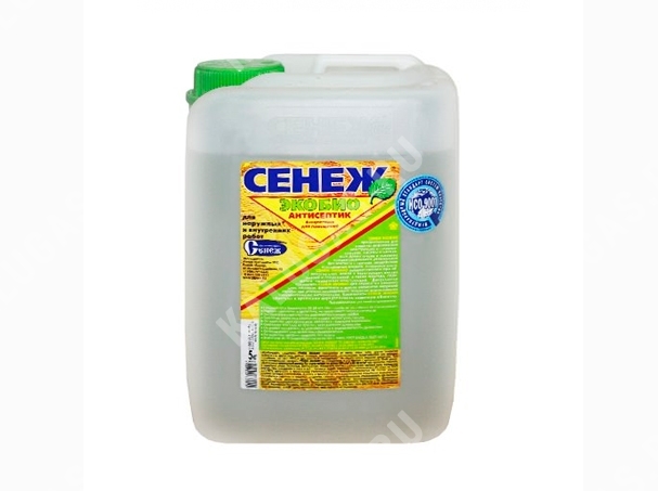 Антисептик «СЕНЕЖ ЭКОБИО» предназначен для защиты древесины от гниения, плесени, синевы и насекомых-древоточцев внутри помещений и на открытом воздухе (под навесом) в условиях гигроскопического и конденсационного увлажнения без контакта с грунтом, воздействия атмосферных осадков, почвенной влаги самостоятельно или в качестве биозащитной грунтовки под ЛКМ. Допускается применять «СЕНЕЖ ЭКОБИО» для защиты элементов наружной службы, подверженных атмосферным осадкам, при последующем покрытии влагостойким лакокрасочным материалом.