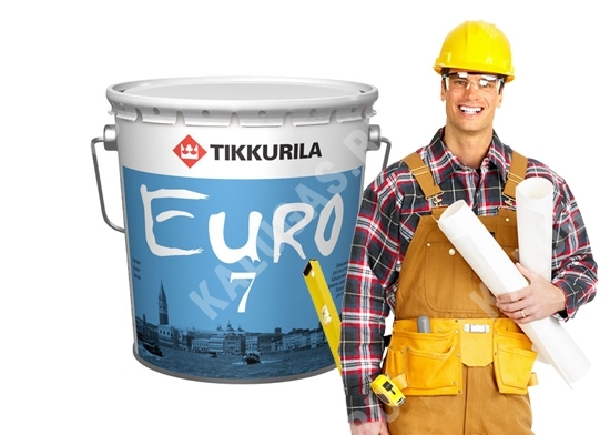 Тиккурила ЕВРО 7 является супербелой (изначально) водоэмульсионной краской, которой можно покрасить стены потолки. Это матовая латексная краска на основе акрилового сополимера.Краска предназначена для окраски оштукатуренных, гипсокартонных, бетонных, зашпатлеванных, кирпичных стен и потолков в сухих помещениях (где нет постоянной влажности или требования к мытью стен и потолков), а также обоев, ДВП и ДСП. Краску Тиккурила Евро 7 можно наносить и на новые, и на ранее окрашенные поверхности.