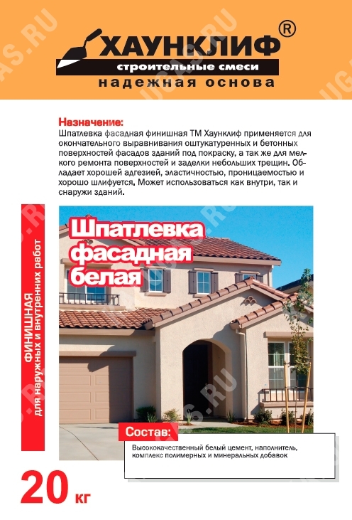 Отзывы про Шпатлевка фасадная финишная (белая) Хаунклиф, 20кг: